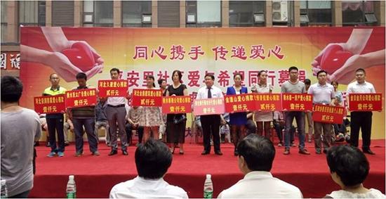 2015年6月26日,集團公司總經理馬艷想及后勤人員代表集團公司,參加了中華大街辦事處平安里社區組織的“同心攜手,傳遞愛心”活動,并捐款兩千元整。活動中,社區人員攙扶著弱勢群體走到臺中間,介紹他們的病情,介紹他們的家庭情況,當聽到他們故事的時候,很多人流下了心疼的眼淚。